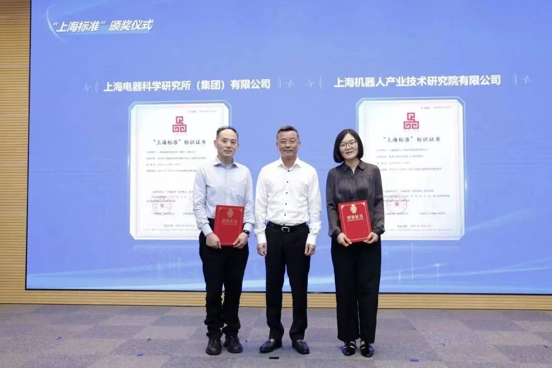 活动现场,肖文高为获得“上海品牌”认证的上海电器科学研究所(集团)有限公司颁奖。陈彦峰为获得“上海标准”评定的上海电器科学研究所(集团)有限公司和kaiyun开云(中国)机器人有限公司官网有限公司颁奖。