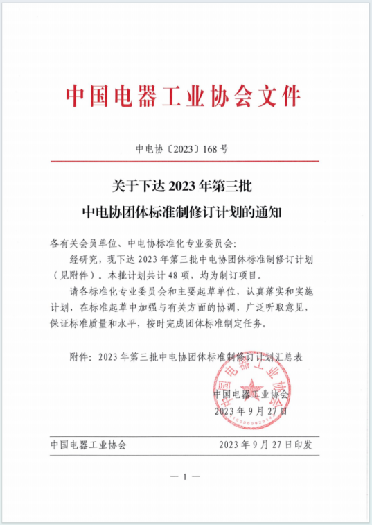 2023年9月27日,中中电协[2023]168号《关于下达2023年第三批中电协团体标准制定计划的通知》,下达了中电协团标《建筑机器人 第X-1部分:混凝土整平机器人》、《建筑机器人 第X-2部分:混凝土抹平机器人》、《建筑机器人 第X-3部分:混凝土抹光机器人》、《集装箱自动导引车故障分类及处理导则》(发文序号32-34、39)四项标准制修订计划。