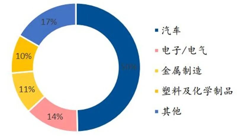 ▲ 2020 年国内工业机器人下游应用领域占比情况